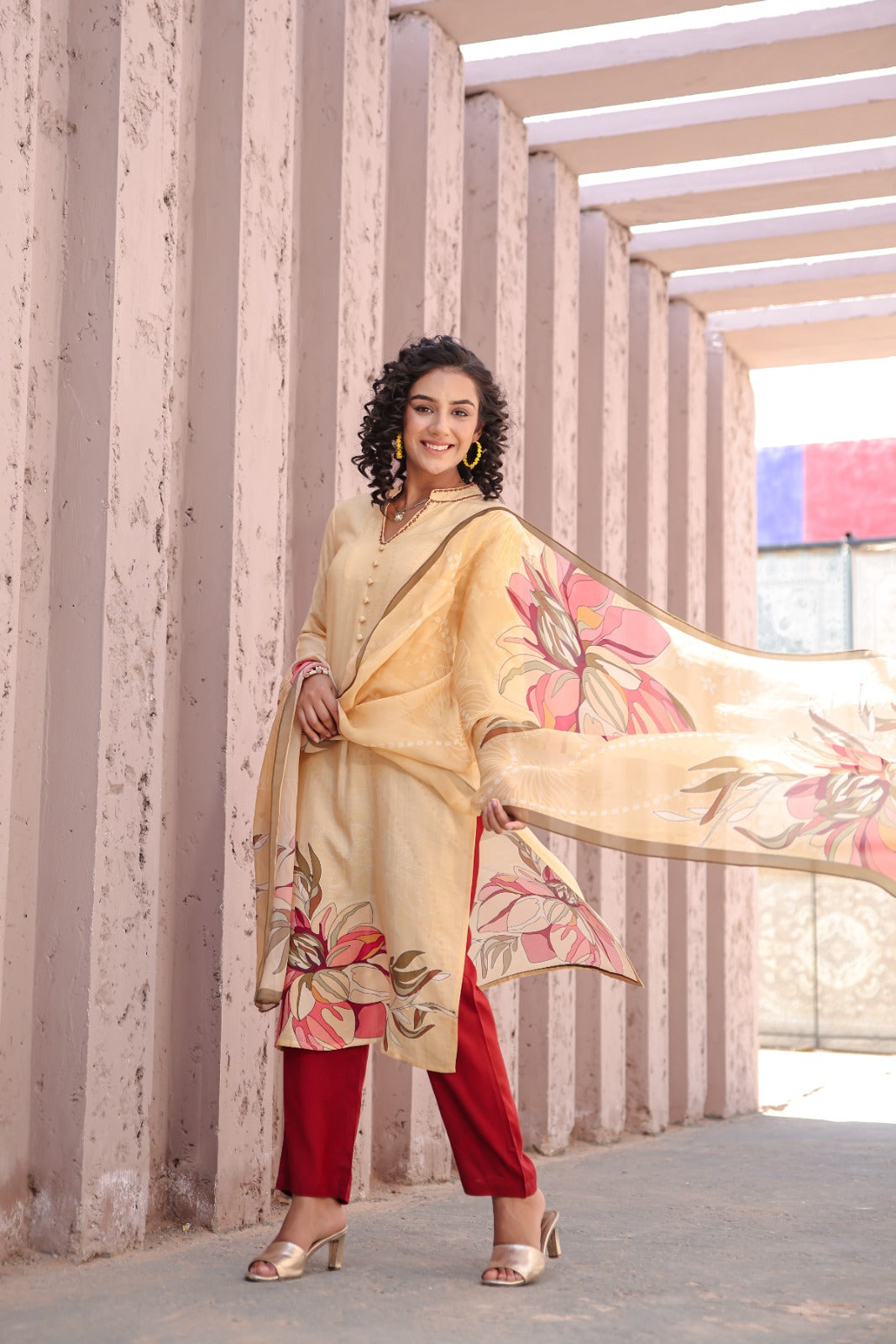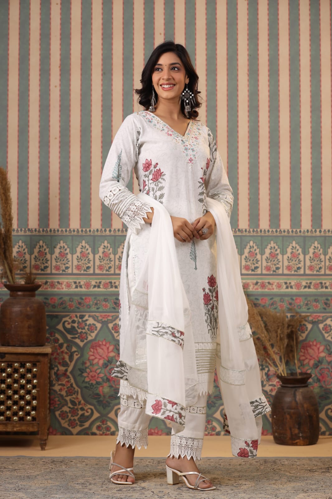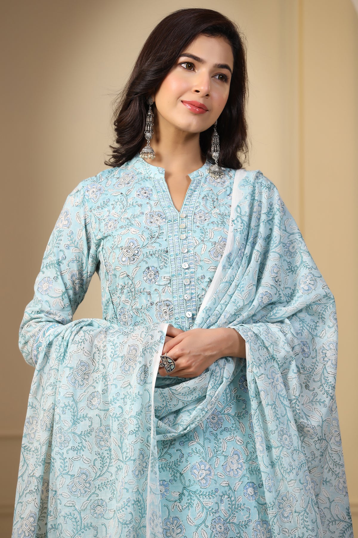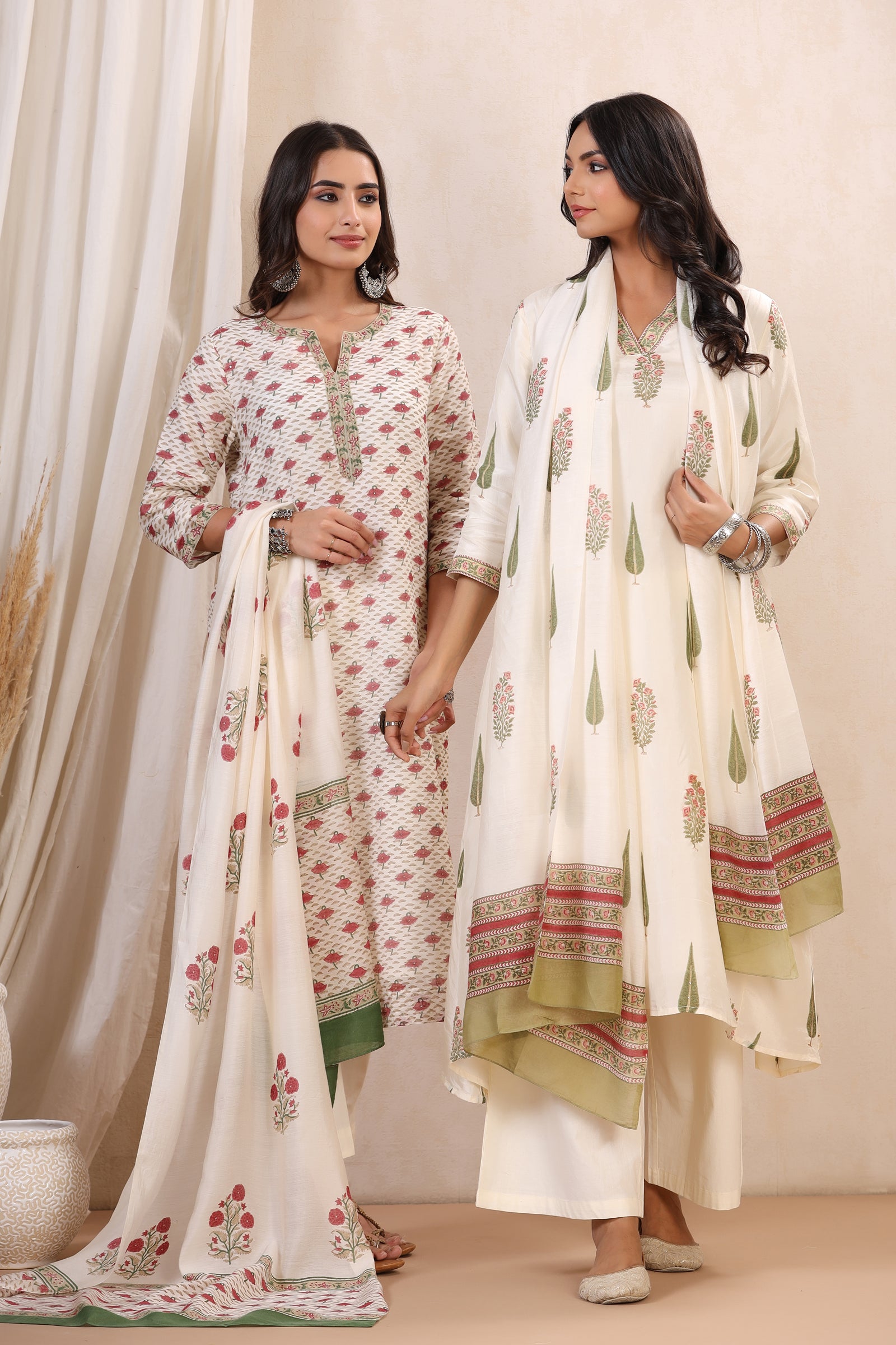 If you are looking for ethnic wear online with a clean fresh look, the Gulnaaz collection is the perfect choice. It exudes a traditional and fresh vibe with its beautiful floral designs. Additionally, the fabric used in these kurta sets are 100% cotton and breathable which feels like a warm hug. Along with all this the Gulnaaz collection is adaptable to be worn at any time of the day be it morning poojas or evening celebrations making it an irresistible choice.
