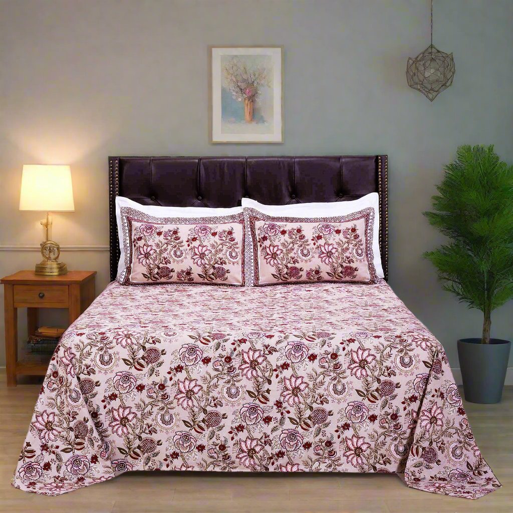 Zara Blooming Chintz Beige Cotton Bedsheet with 2 Pillow Covers