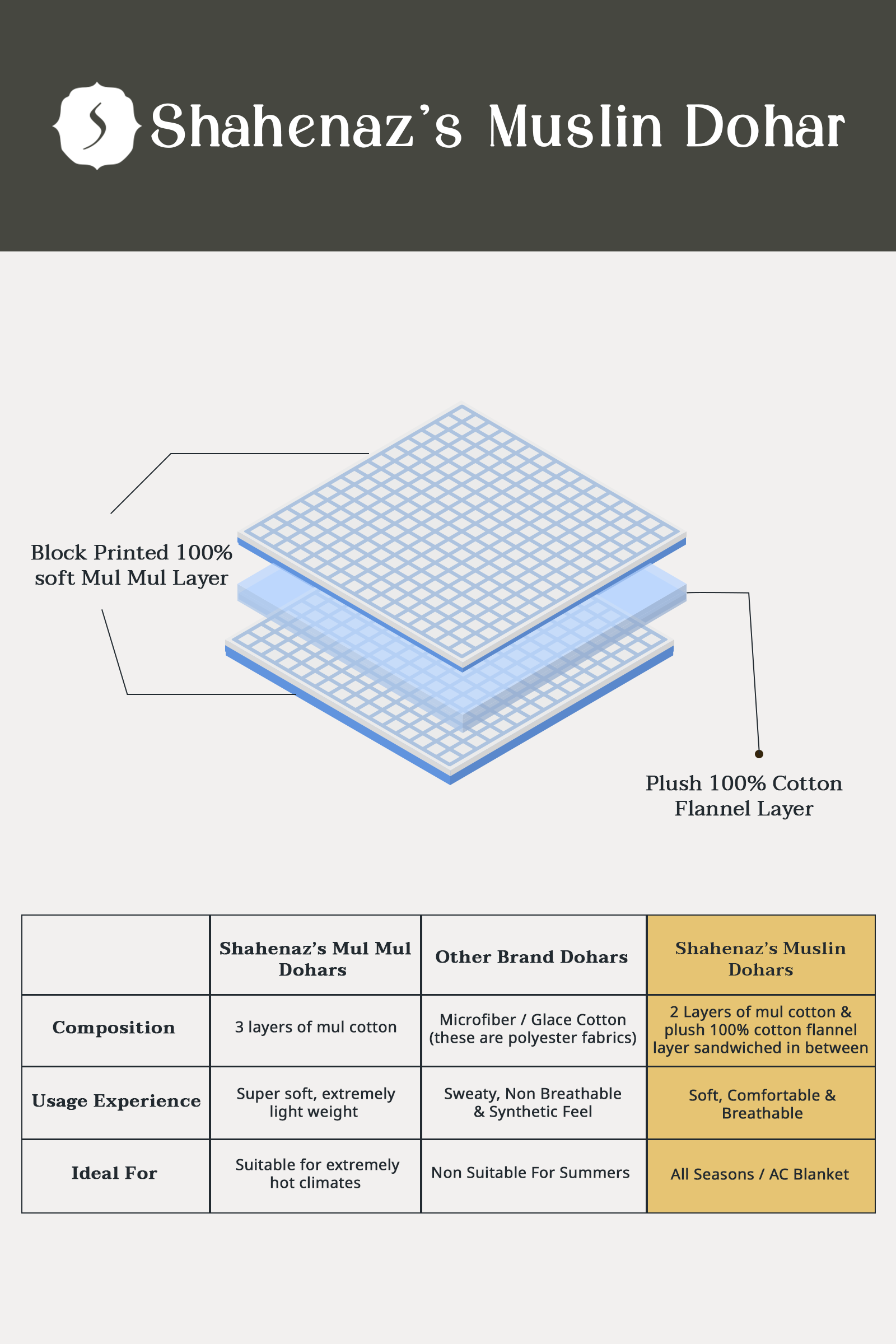 Embrace warmth and beauty with the Angarika Phool Mustard Reversible Cotton Muslin Dohar. Crafted from premium 100% cotton muslin, this dohar offers luxurious comfort and breathability, ensuring a restful sleep throughout the night. Its rich mustard color and intricate phool print add a touch of elegance to your bedroom. Whether you're snuggling up on a chilly winter night or seeking breathable comfort in the summer, the Angarika Phool Mustard Reversible Cotton Muslin Dohar is your perfect choice.