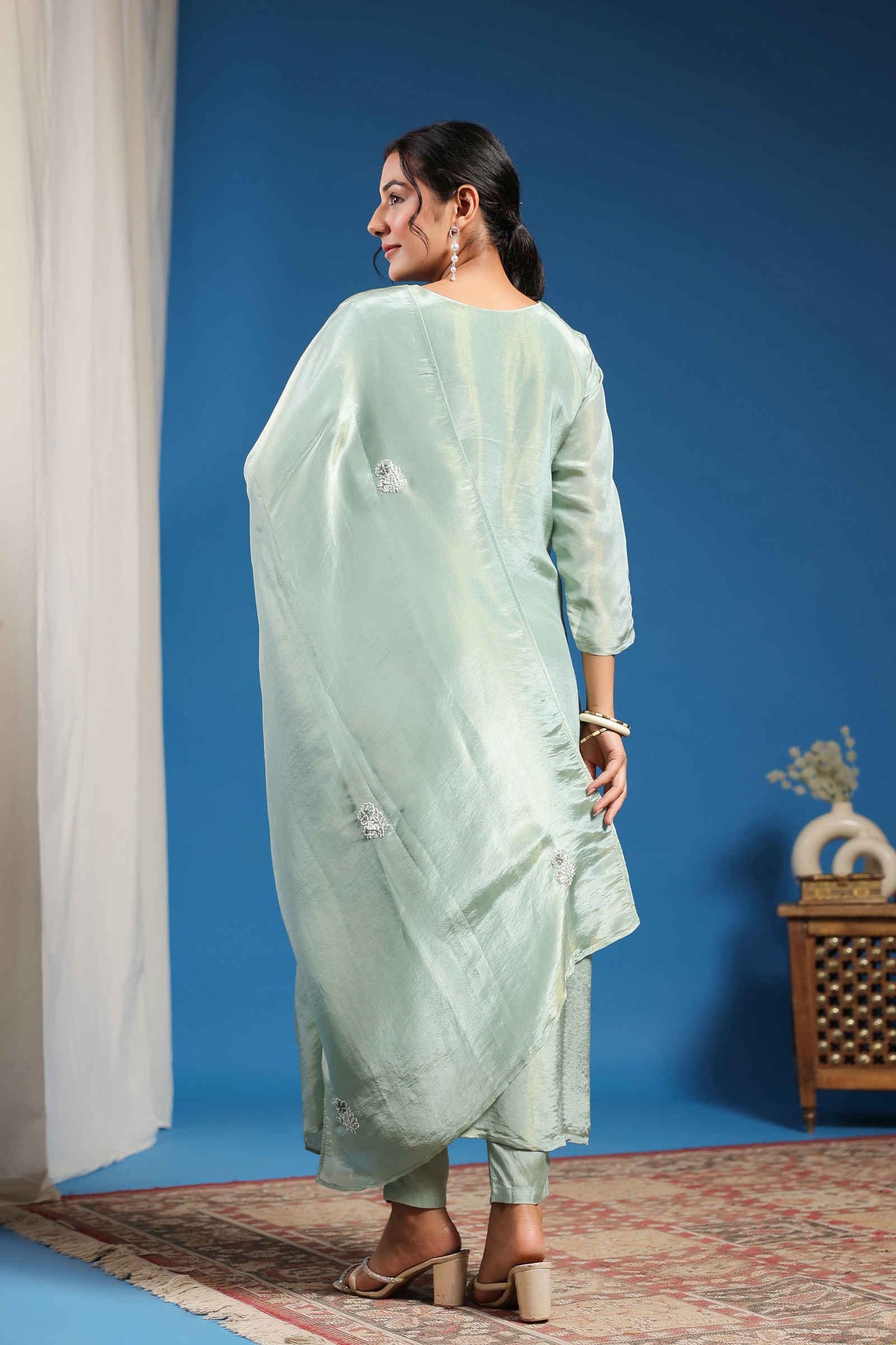 Falsafa Zehra Mint Green Kurta Pant and Dupatta Set