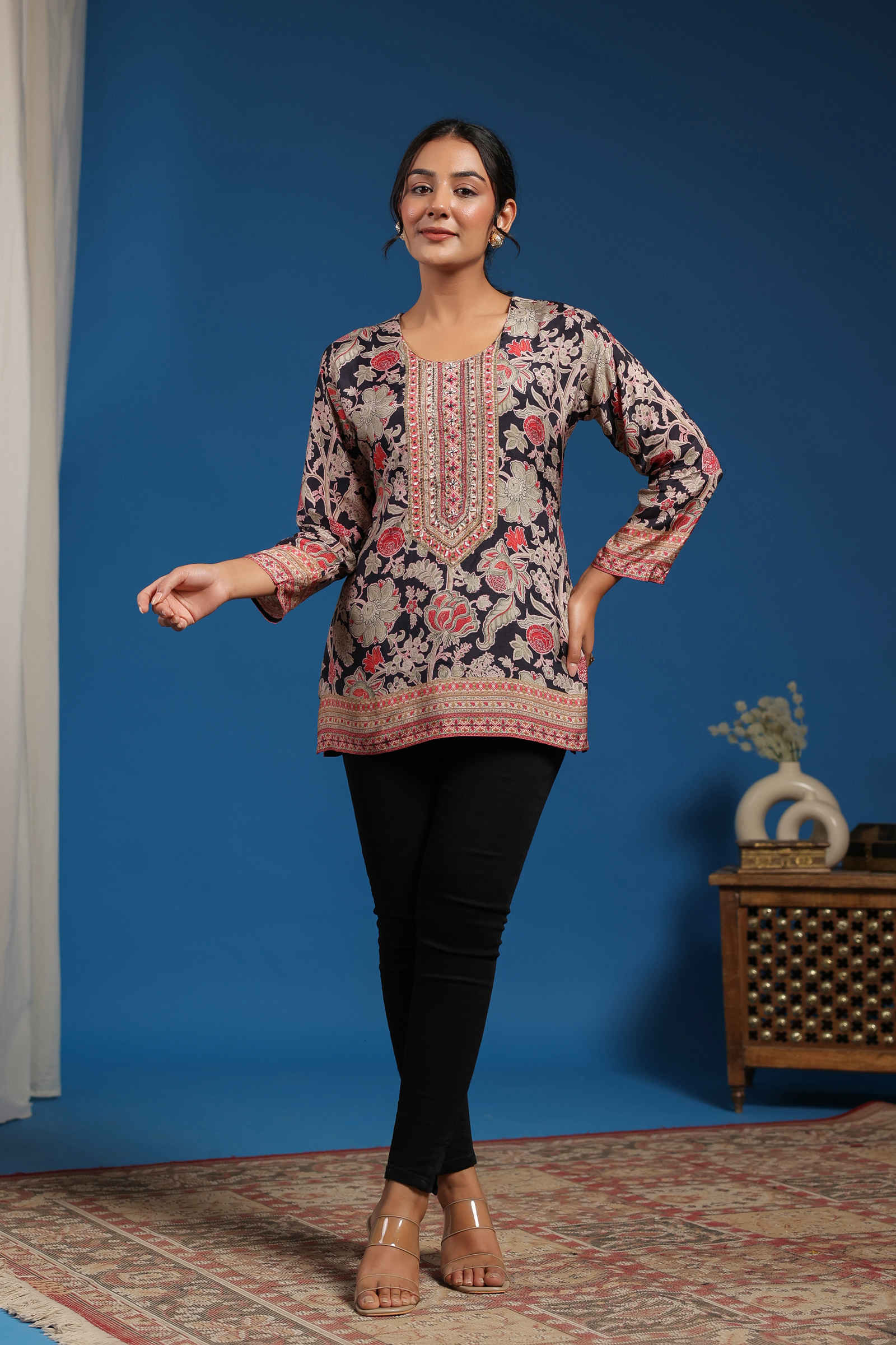 DISCLAIMER: This product is handcrafted with care, and minor variations in embroidery and fabric texture are a testament to its artisanal charm. These unique differences add to the beauty of the ensemble.